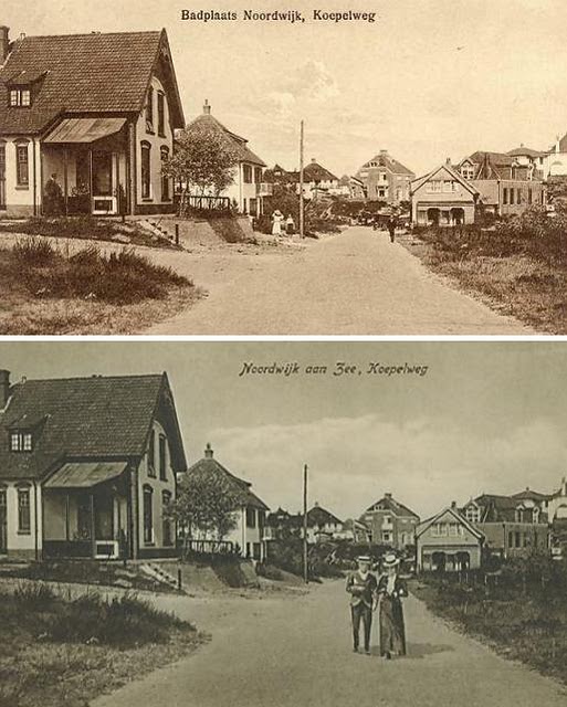 Hieronder een foto die wél anders is: ouder vooral. Je ziet het aan het huis links op de foto en vooral aan het boompje er schuin voor. En de Javastraat ligt er nog niet. Maar ook hier: het statief van de camera staat op exact hetzelfde punt. Alsof die er al die jaren is blijven staan.