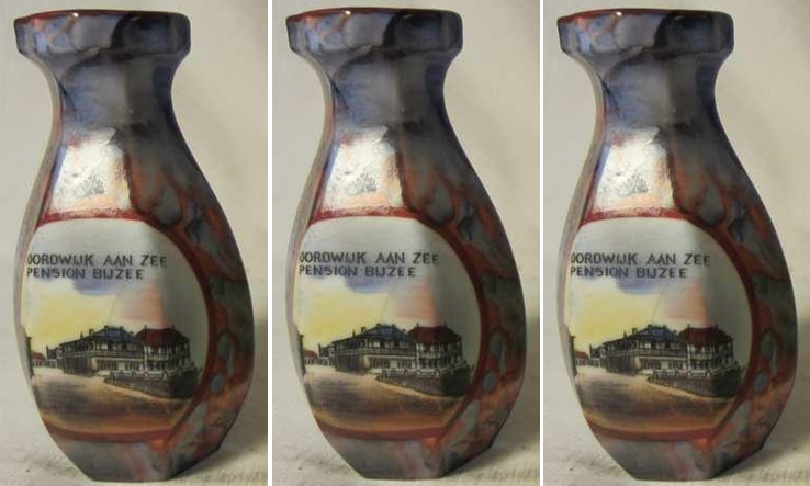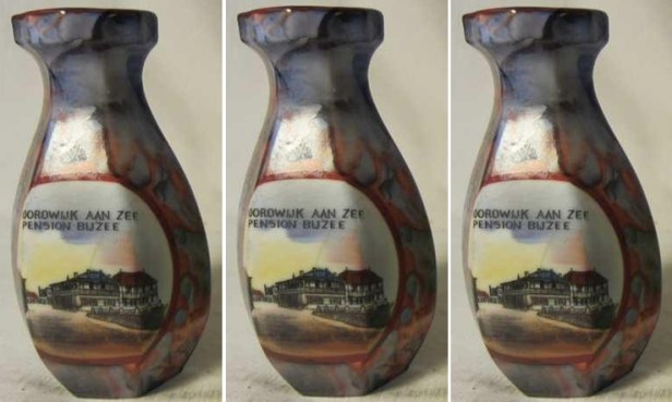 Ron H. attendeert mij op dit vaasje dat op marktplaats.nl te koop wordt aangeboden met daarop een afbeelding van “Pension Bij Zee.”