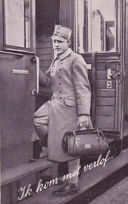 De kaart was een voorgeprogrammeerde: als je gemobiliseerd was in het Nederlandse leger, zat er zo eentje waarschijnlijk gewoon in je persoonlijke standaard uitrusting (psu). Als je dan al eens met verlof ging, kon je de kaart voorafgaand aan je komst sturen. Deze soldaat – ene ‘Van Tricht’ of van ‘Van Trief’ uit Waddinxveen (‘Waddingsveen’ schreef je toen blijkbaar nog) – deed dat vanuit Noordwijk in september 1939. Hij schreef: “Mijn geliefde ouders, mijn gezondheid is goed, hopende van u ook. Nu moeder ik kom woensdag weer eens met verlof thuis. Ik zal niet weten waar ik het heb: om weer eens thuis te zijn. Moeder en Vader mijn h. groeten.”