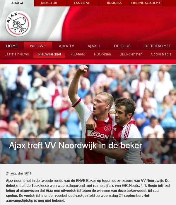 Op 12 juni 1961 won Ajax moeizaam van Noordwijk. Sindsdien is Noordwijk alleen maar sterker geworden, dus het bekerduel tussen beide clubs op 21 september a.s. (50 jaar later!) belooft wat! Op de website van Ajax zit de schrik er in ieder geval al goed in :-).