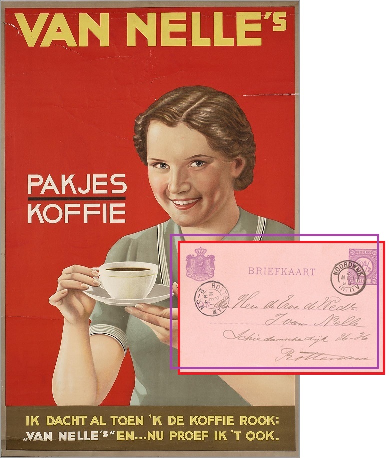 Johannes van Nelle zelf was al in 1811 overleden. Zijn weduwe, Hendrica Brand, zette de zaak voort, maar stierf op haar beurt al in 1813. Hun zoon Johannes van Nelle jr. en zijn zwager Abraham Goedkoop zetten de zaak voort onder de naam De Erven de Wed. J. van Nelle. En in 1837, toen ook junior overleed werd de zaak – onder dezelfde naam – helemaal overgenomen door ene familie Van der Leeuw. Het ging daarna allemaal nog een tijdje door (tegenwoordig bestaat ‘Van Nelle’ alleen nog maar als een merknaam van Douwe Egberts). Maar in 1894, toen de brief vanuit Noordwijk verzonden werd naar Rotterdam, was dus een ‘Van der Leeuw’ in charge.