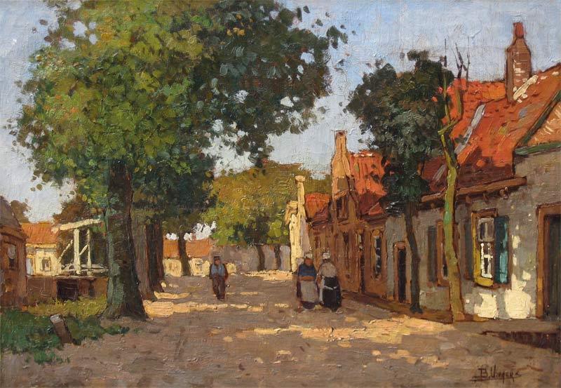 Hij zou uiteindelijk in Nunspeet komen te overlijden (waar hij woonde en ook veel schilderde), maar tussendoor deed hij regelmatig de Bollenstreek aan. Dit schilderij heet ‘Dorpsstraatje in Noordwijk’. Wie het weet mag het zeggen. Het doet een beetje denken aan het schilderij dat Daniel Nooteboom maakte van het einde van de Douzastraat. Maar het bruggetje links herken ik niet: