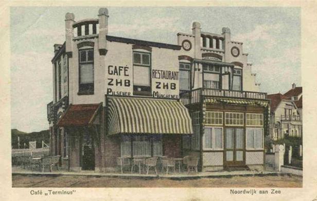 Mooi die ansichtkaart van Café Terminus met de ZHB reclame-schildering.