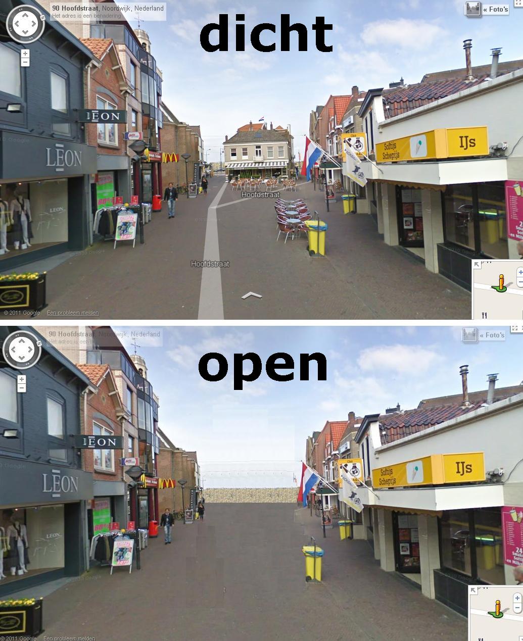 Ik heb er wel eens eerder voor gepleit om dat rare eiland van overjarige panden aan het einde van de Hoofdstraat in Noordwijk aan Zee van de wereld weg te vegen en een open ademtocht naar zee te maken. Gewoon om wat meer lucht te scheppen op deze plek van het dorp waar frituurluchten net zo lang strijden met vis- en bloemenluchten tot iedereen er onpasselijk van wordt.