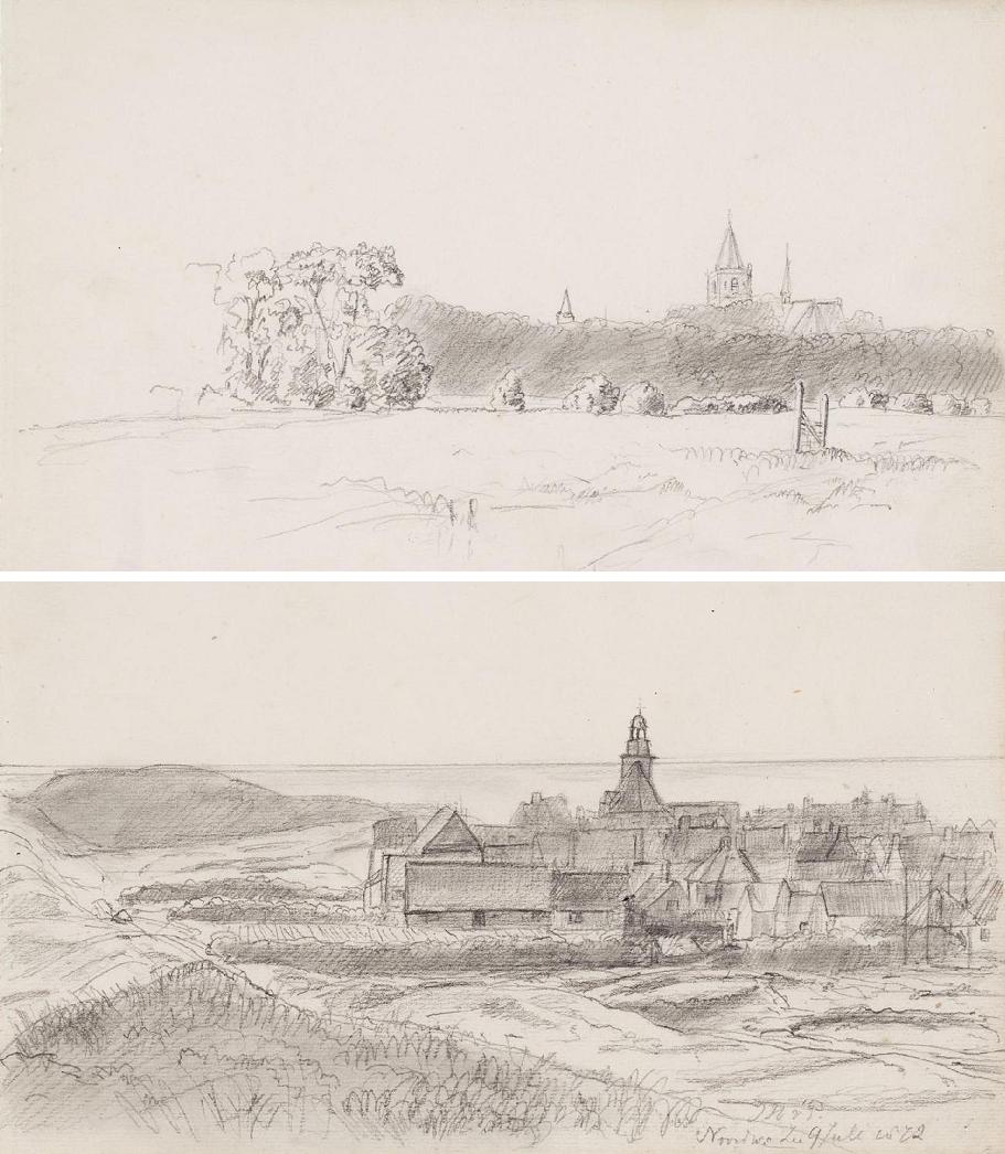Tekenen was al vroeg zijn lust en zijn leven. Jan Hoynck van Papendrecht deed aanvankelijk de Handelsschool in Amsterdam, maar aansluitend schreef hij zich opeens in bij de Koninklijke Academie voor Schone Kunsten van Antwerpen. Daarna zat hij nog vier jaar in München om vervolgens weer naar Nederland terug te keren. Daar tekende en schilderde hij zich drie slagen in de rondte. Onder andere deze twee tekeningen uit 1872: Gezicht op Noordwijk aan Zee en Gezicht op Noordwijk-Binnen.