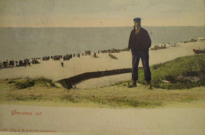Deze kaart is van een heel andere orde: op deze kaart stond alleen maar ‘Groeten uit’ en daarachter moest je dan maar de relevante plaatsnaam zelf toevoegen. De afbeelding kon overal gemaakt zijn, in Den Helder of in Hoek van Holland. Of op alle plekken daartussen.