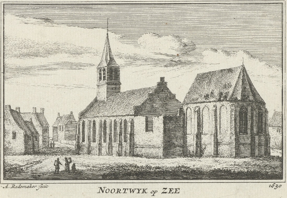Noortwyk op Zee niet verre van Noortwyk binnen, gelegen op den uiterften Zeekant van Hollant. Na dat het de Spaenfche woede geproeft had, is de Kerk daerna tot eenbequame predikplaets herftelt. Dus is de afbeellt in den jare 1630