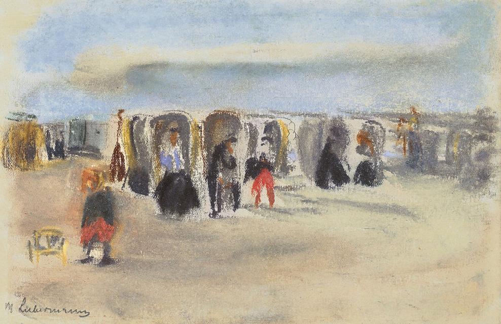 Het blijft een onuitputtelijke bron van inspiratie voor dit blog: het werk van Max Liebermann. Ik schat dat de term ‘Liebermann’ samen met de termen ‘Palace Hotel’ en ‘Huis ter Duin’ de meest voorkomende zijn in dit hele bliksemse blog. Dit is een pasteltekening, getiteld ‘Strandszene in Noordwijk’ uit 1908.