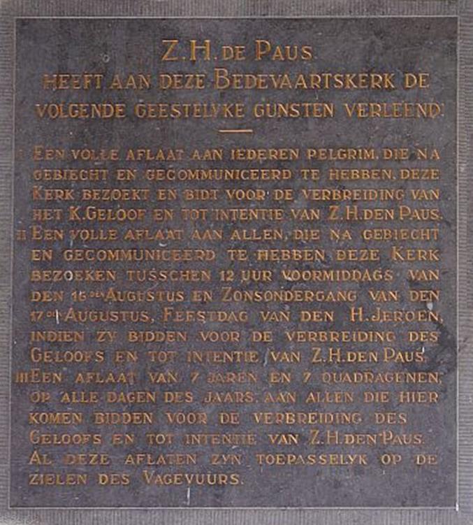 Om enig tegenwicht te bieden tegen het hoge hervormde gehalte van het vorige blog, deze keer weer iets kattelieks: de steen die in het kerkportaal van de rooms-katholieke parochiekerk van Sint Jeroen is ingemetseld. De tekst spreekt voor zich (klik voor een uitvergroting), hoewel………..