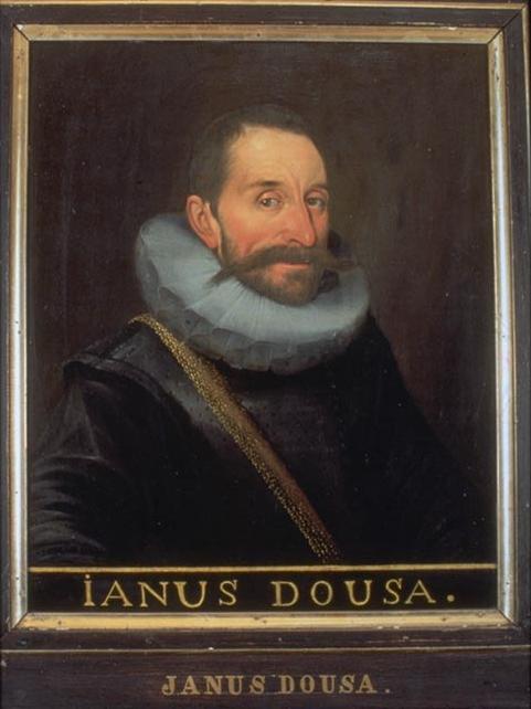 “Janus Dousa” was de gelatiniseerde naam van Jan van der Does (Noordwijk, 5 december 1545 – Noordwijk, 8 oktober 1604). Jan was heer van Noordwijk en Kattendijke, bevelhebber tijdens het beleg van Leiden, humanist, dichter, filoloog, bestuurder en bibliothecaris van de Universiteit Leiden. Dit schilderij is van een onbekende meester. Het werd in 1611 door de curatoren van de Leidse Universiteit aangekocht ten behoeve van de bibliotheek, waarvan Dousa de eerste bibliothecaris was.