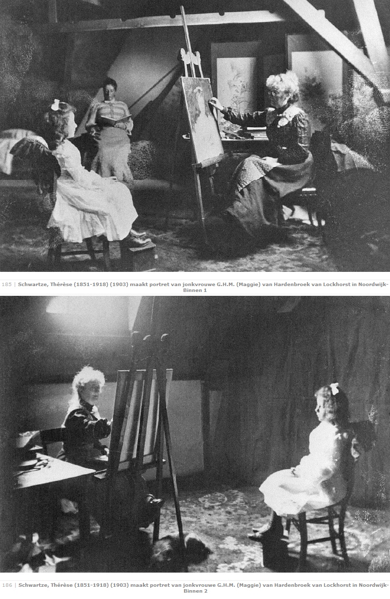 Voor het portret van de Jonkvrouwe Maggie kwam Thérèse hoogstpersoonlijk met haar verfwinkeltje naar Noordwijk, waar ze op de vliering van de burgemeesterswoning en onder het toeziend oog van een kindermeid haar zalige artistieke gang kon gaan.