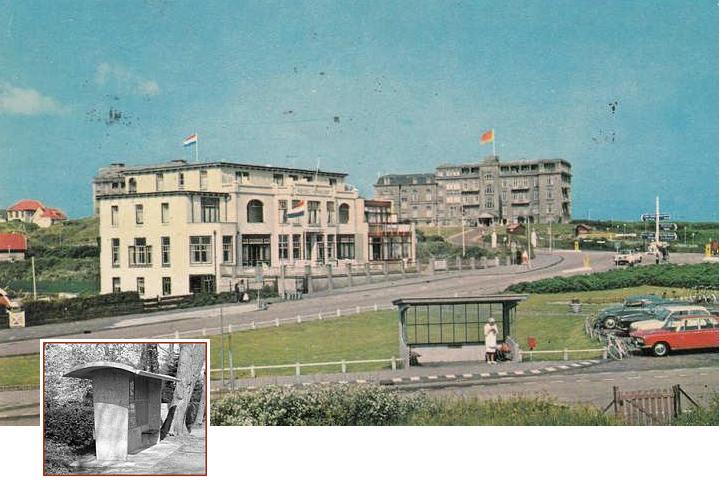 Ze stonden op verschillende plekken in Noordwijk (en ver daarbuiten). Soms ook in een ietwat andere vorm: een gebogen dak over één enkele wand, maar dat was niet erg afdoende tegen een beetje neerslag. De grotere versie, zoals hier op het Picképlein in Noordwijk aan Zee was een stuk comfortabeler.