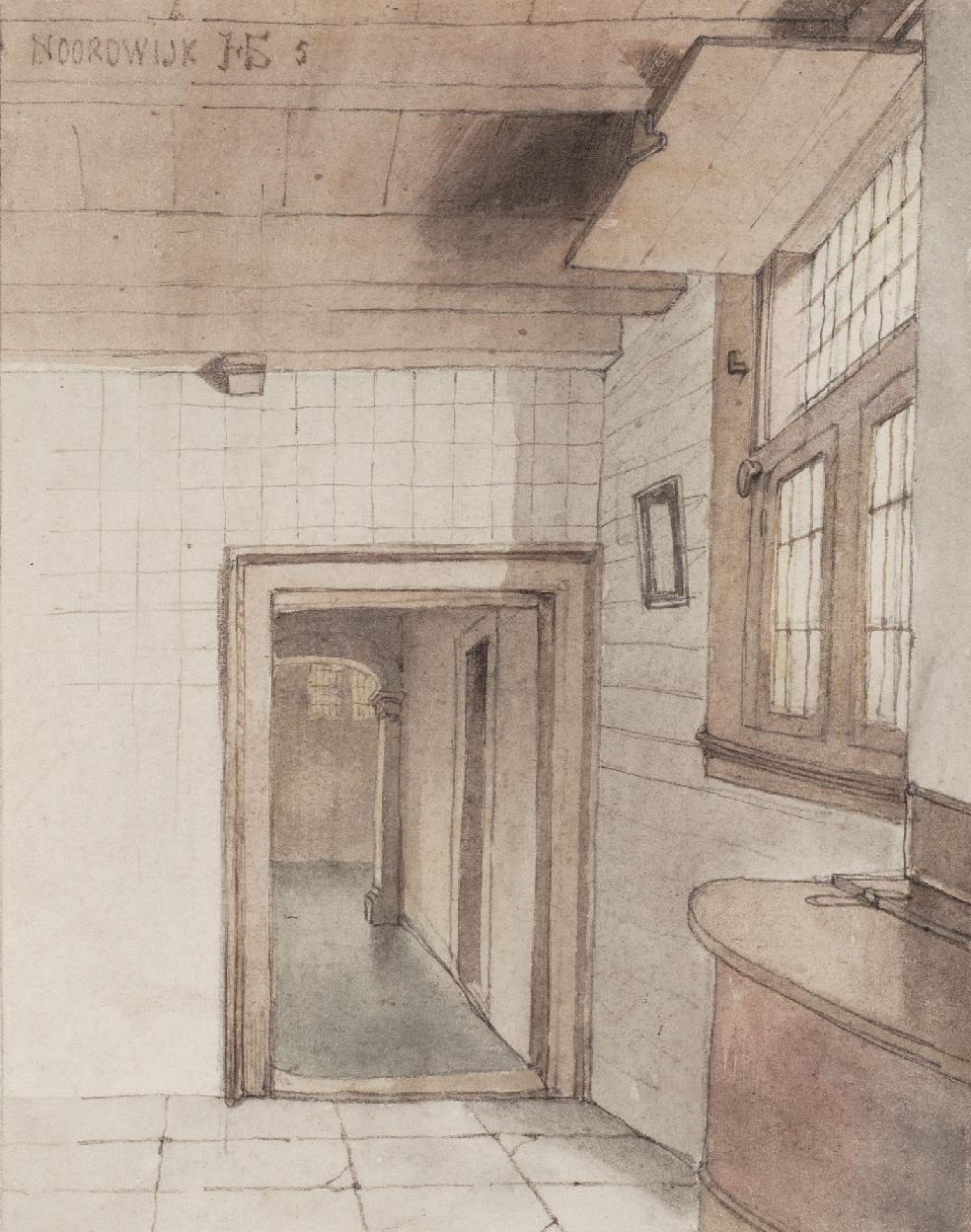 Hendricus Johannes Scheeres (1829-1864): “Interieur van een zeventiende-eeuws huis te Noordwijk”( ca. 1850). Ook deze prent bevindt zich in de rijke collectie van de Leidse Universiteitsbibliotheek. Voor de verandering dit keer ongestempeld.
