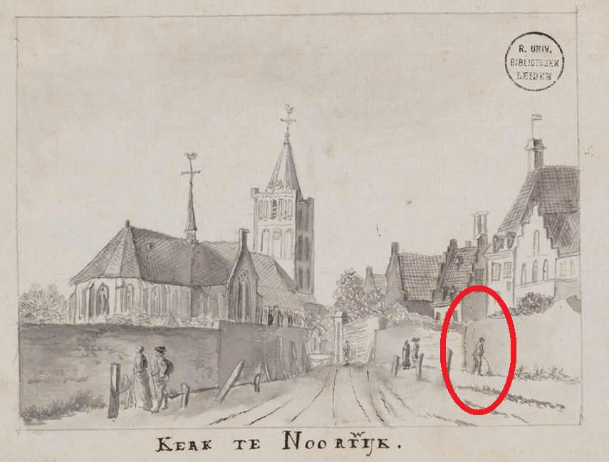 Een prent van rond 1850 van een onbekende kunstenaar. De Grote Kerk van Noordwijk (bijna aren e de w vergeten).