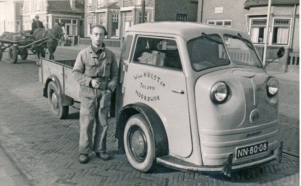 Ik krijg deze onvergetelijk mooie foto aangereikt van twee voddeboeren: Dirk – De Kuks – Barnhoorn achteraan met paard-en-wagen, voddeboer op Zee. En op de voorgrond Willem – Tokkie – van der Hulst, voddeboer op Binnen. Willem is al gemotoriseerd: een Tempo Matador uit 1950. Met de hand zijn naam en telefoonnummer op de deur geschilderd. De Nieuwe Zeeweg, ergens in de jaren vijftig.