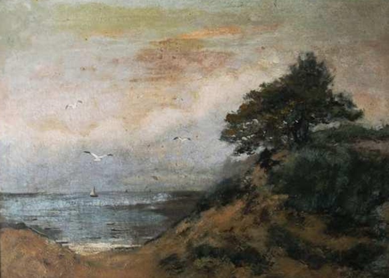 Jacobus Johannes Doeser (1884 – 1970) woonde en werkte in Laren, Utrecht, Zandvoort, Parijs, Leipzig, en ja, ook in Noordwijk. Hij was een selfmade schilder, die zich vooral toelegde op bloemen en landschappen. Dit schilderij maakte hij in Noordwijk rond 1920: “Zeegezicht vanaf de duinrand”. Het is te koop op marktplaats. Het is of een slechte foto, of een schilderij in opperste staat van vervuiling. Het is al enkele malen gerestaureerd volgens het bijschrift, maar een nieuwe restauratie / schoonmaakbeurt lijkt dringend gewenst.