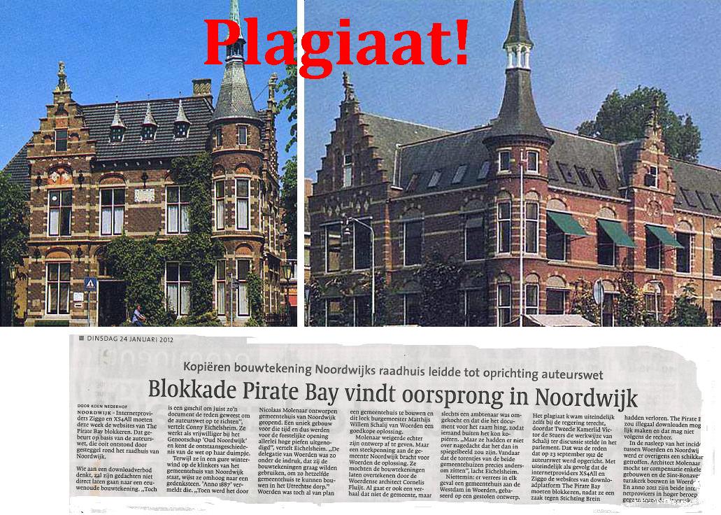 Het Leidsch Dagblad van vandaag diept weer eens een oude kwestie op: het plagiaat dat werd gepleegd door de vroede vaderen in Woerden met het ontwerp voor een Noordwijks gemeentehuis. Het verhaal is al eerder verteld, daar verwijzen we maar ff naar. Maar het is een feit dat hier inderdaad de kiem werd gelegd voor de latere auteurswet, een wet die ikzelf ook wel eens overtreed, vrees ik, zij het altijd tot meerdere eer en glorie van Noordwijk in het algemeen en dit blog in het bijzonder. Kortom: altijd voor het goede doel 🙂