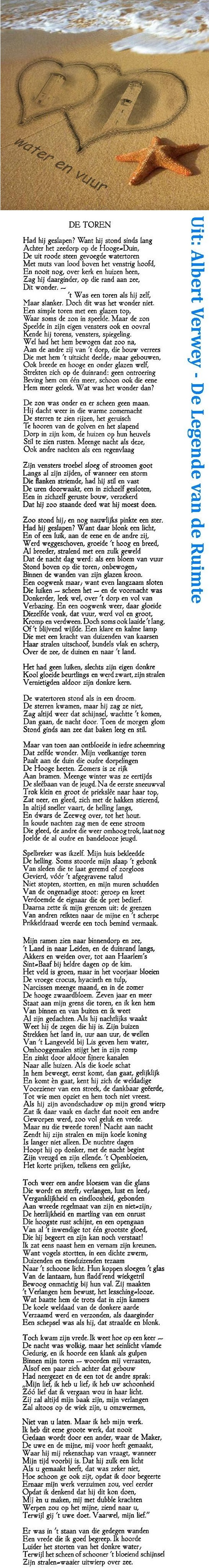 Kom op Klaas, het gaat heel simpelweg over een watertoren die baalt als een stekker vanwege het feit dattie concurrentie krijgt van een vuurtoren. Een hoop chagrijn daarover, maar uiteindelijk verzoent de watertoren zich met de vuurtoren. Het is wat mij betreft het mooiste gedicht dat Verwey over Noordwijk heeft gemaakt.