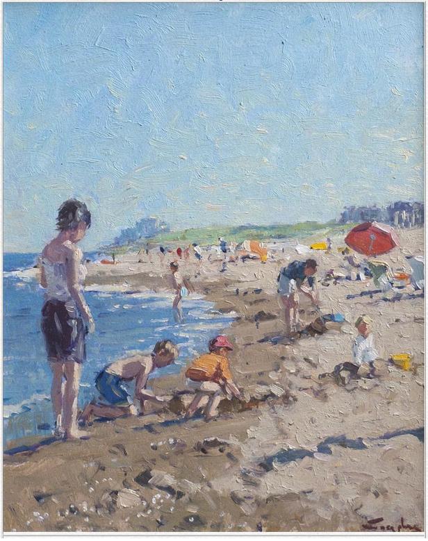 “Strand van Noordwijk” is de titel van dit schilderij van de hand van de – oorspronkelijk Katwijkse – schilder Niek van der Plas. Zomaar te koop aangeboden op internet. Klik hier.