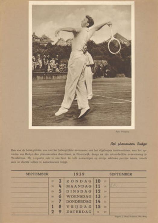 De foto toont – een beetje wazig – de Amerikaanse tennisser John Donald “Don” Budge in actie op de Noordwijkse Casinobanen in de zomer van 1938, kort nadat hij in Londen Wimbledon op zijn naam had gebracht. Don Budge stond 5 jaar lang aan de top van de wereldranglijst. Hij was de eerste die in één jaar (1938) alle vier de Grand Slamtoernooien won: Australië, Frankrijk, Engeland en Amerika. Hij was een Legend of All Times en werd in 1964 voor de eeuwigheid bijgezet in de International Tennis Hall of Fame.