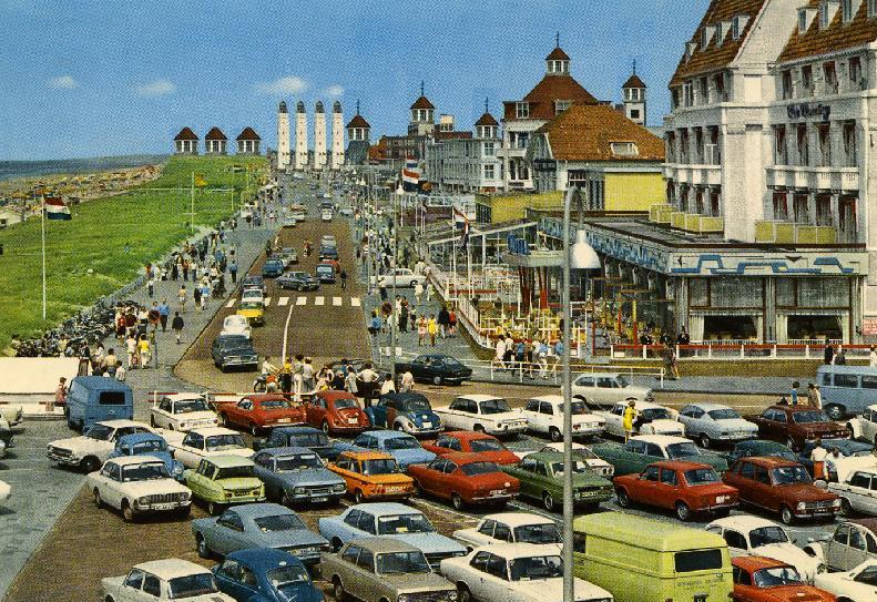 Nog steeds? De man moet een hele reeks ansichtkaarten hebben van deze plek waar altijd zijn kar op staat en steeds weer andere autotypes op het parkeerterrein ernaast.