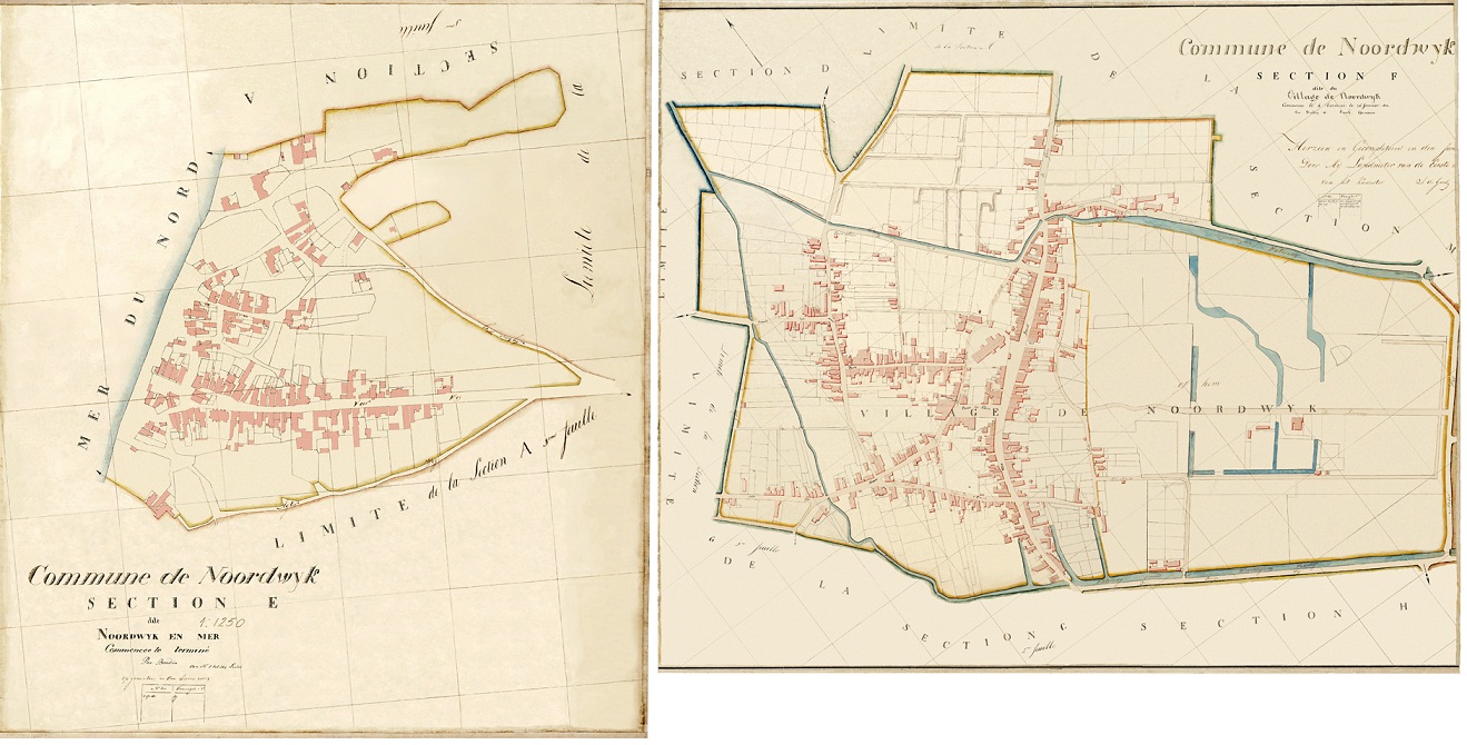 Dit zijn twee minuutplannen, eigenlijk: de eerste kadastrale kaarten van Noordwijk Binnen en Noordwijk aan Zee. Ze werden gemaakt ten tijde van de Franse overheersing, naar het model van de kaarten zoals dat toen al onder Napoleon in Frankrijk gangbaar was. Deze kaarten stammen uit 1813, zijn enigszins bewerkt, maar worden nu in beperkte oplage opnieuw gedrukt (met dank aan WvdH :-))