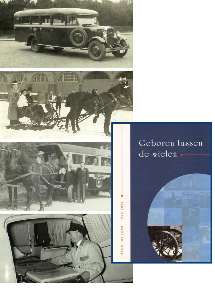 Het boek “Geboren Tussen De Wielen” werd uitgegeven bij gelegenheid van het 100 jarig bestaan van de firma Beuk in Noordwijk. Het geeft niet alleen een mooi overzicht van de geschiedenis van dit roemruchte transportbedrijf. Het biedt ook een inkijkje in de diversiteit ervan door de jaren heen. Beuk was van oorsprong een melkhandelaar die met paard en wagen langs de deuren trok, maar allengs meer ging doen met paard en wagen dan met melk: hij bouwde een stalhouderij op die er wezen mocht (veel Noordwijkers trouwden en rouwden in koetsen van Beuk) en hij liet de stalhouderij naadloos overgaan in een busbedrijf dat zou uitgroeien tot één van de bekendste (en grootste?) van Nederland.