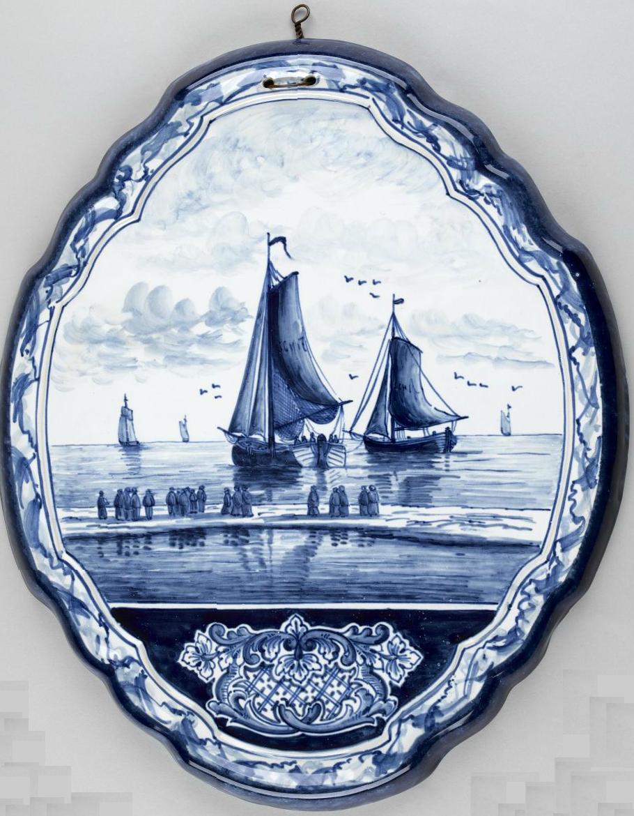 Dit prachtige stuk Makkumer aardewerk, voorstellende twee bommen bij het strand, werd in 1929 gemaakt door Jan Romke Steensma (1887-1967). Het bevindt zich in het Fries Scheepvaartmuseum. Ik neem van de site van dat museum de beschrijving over: