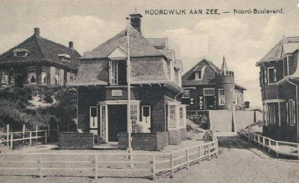 Villa “De Loods”vormde samen met de Villa’s Thule, De Wheme en Golfzang een alleraardigst rijtje aan de Noordboulevard, gebouwd rond 1910. Ik herinner me die villa’s nog zeer goed. Maar dat malle huis wat daar tussen stond, een beetje naar achteren gedrukt, dat stond niet meer op mijn netvlies. ‘Mal’, omdat het eigenlijk een doodnormaal landhuis was, zij het dat het een kitscherig – en kwa verhoudingen ook wat misplaatst – torentje had met heuse kantelen. Het stond op een hoog duintje, dat – om de boel bij elkaar te houden – omgord was met een stevige muur met steunberen.
