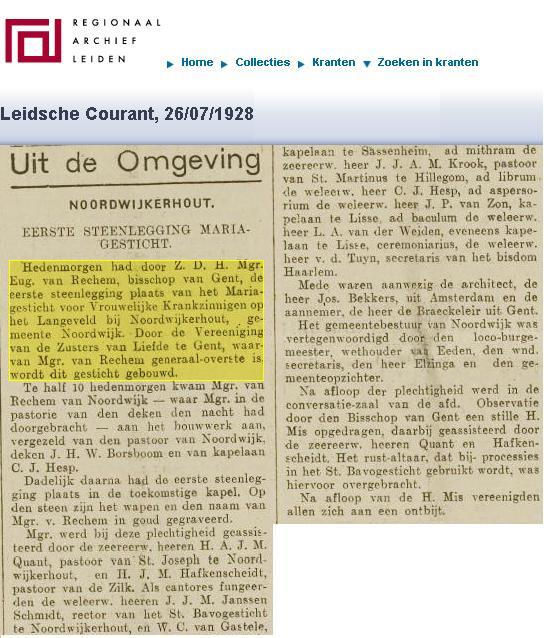 De geschiedenis van de Sancta Maria is beschreven in een mooi boek van de hand van M. van Dort-Clements: “Weerspiegeling van Toen: 60 Jaar Sancta Maria” (1988), een boek dat antiquarisch nog wel beschikbaar is. Het beschrijft in beeldende taal een keur van gebeurtenissen en anekdoten. Een aardige – vind ik persoonlijk – is dat het paviljoen dat de naam van de Noordwijkse Heilige Jeroen droeg, bestemd was voor ‘de onrustigen’. Daar word je als Noordwijker bijna zelf onrustig van.