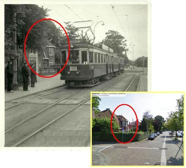 Het huis links op de foto staat er nog altijd. Maar de tram reed weg en kwam niet meer terug.