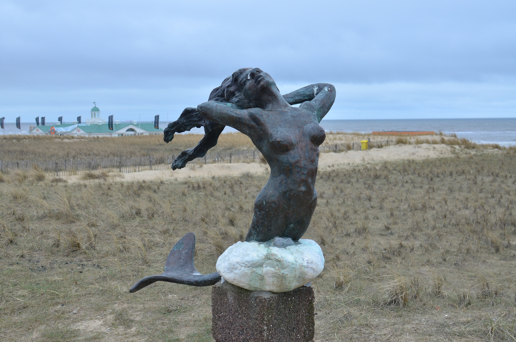 Het tweede zeemeerminnenbeeld in Noordwijk dus. De echte meerminnen liggen straks weer op het strand 🙂