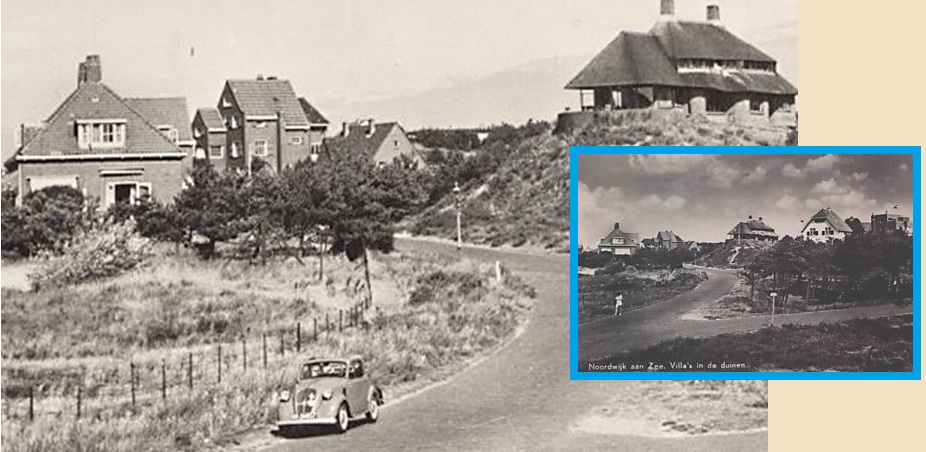 De auto is een Fiat 500, bijgenaamd de ‘Topolino‘ (‘muis’ in het Italiaans). Het autootje werd tussen 1936 en 1955 in een grootse oplage (520.000 exemplaren!) met de hand gebouwd. Dit was er ééntje van, op de Rembrandweg in Noordwijk aan Zee en als ik het helemaal goed zie, is het zelfs de ‘convertible‘ versie uit 1947. Op de inzet-foto, zonder telelens vanaf hetzelfde standpunt genomen, is de Topolino nog niet aangekomen. Of al voorbij.
