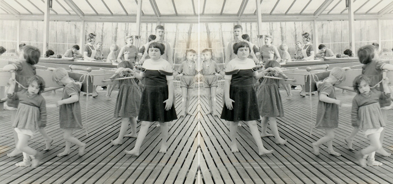 We blijven even bij het onderwerp “wintertuin” van de Berghstichting (zie vorig blog). In de jaren 50 werden daar deze prachtige foto’s gemaakt, onder andere van de daar aanwezige tredmolen. Een groot aantal kids, toen nog ‘patienten’, kon niet zo vaak buiten wandelen en dus maakte men tredmolens waarin ze rondjes liepen. Zodoende hadden ze toch voldoende lichaamsbeweging. Op de onderste foto uit 1950 zie je nog zo’n tredmolen. Er is duidelijk te zien dat de kinderen vastgebonden werden waardoor ze wel móésten lopen! (klik wederom 2x op de foto en wederom met dank aan Jos)