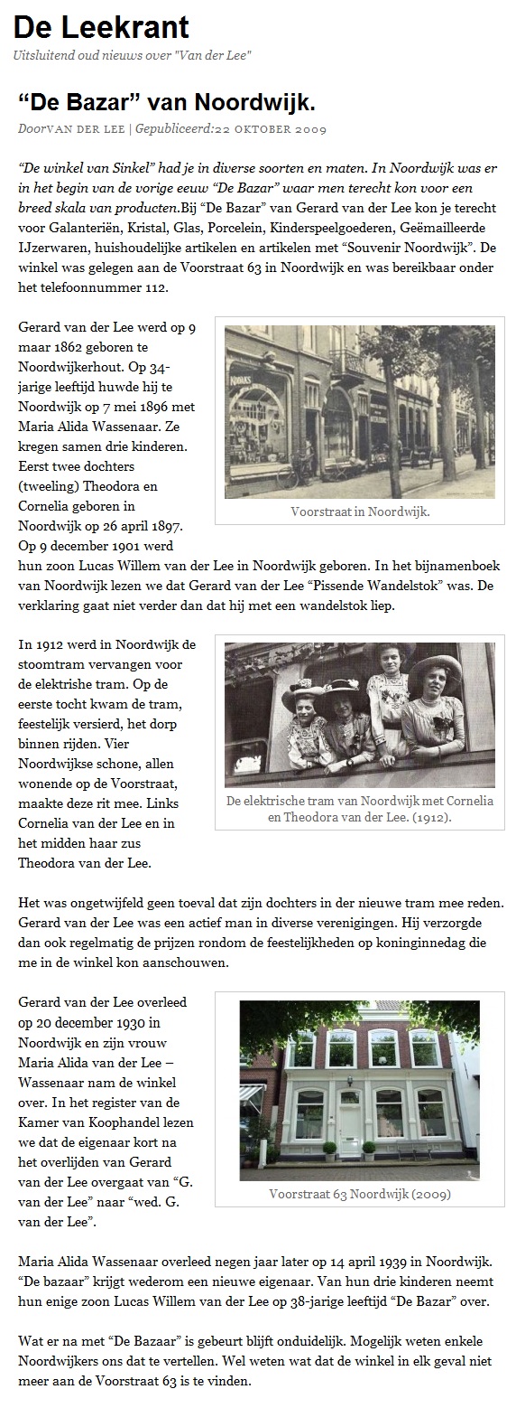 Op internet een stukje van de site van de familie Van der Lee, met Noordwijkse aftakkingen.