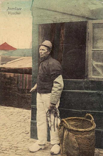 Op internet staat bij deze foto vermeld dat het zou gaan om ´Noordwijkse klederdracht´. De vraag is of hier niet meer nadruk moet leggen op ‘Noordwijks’ dan op ‘klederdracht’, want ik vermag niet in te zin wat er nu zo specifiek Noordwijks is aan de kleren die deze vissersman aan heeft. Ik geef mijn oordeel voor iedere ander. Als iemand kan uitvinden welk onderdeel van ’s mans goeie goed nu zo vreselijk Noorwijks is, houd ik mij aanbevolen.