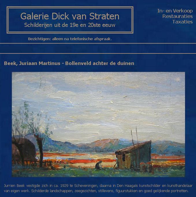 De Haagsche kunstschilder Jurrien Beek – stel ik me voor – is ergens ten noorden of ten zuiden van Noordwijk in het bollenland gaan zitten, vlakbij een typerend hutje en een al even typerende ‘hooibarg’ en ging met zijn vette olieverf twee uur lang lekker tekeer. Er kwam veel kracht en kleur op het doek, een ode aan alle bollenboeren achter de duinen.
