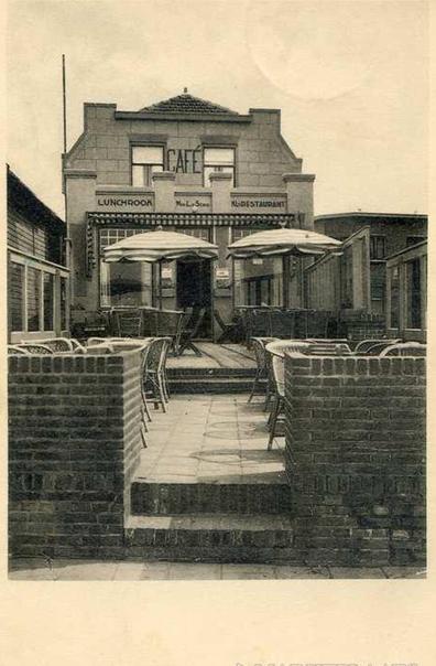Het is één van de oudste uitspanningen aan de Noordboulevard en bij mijn weten nog steeds hetzelfde familiebedrijf, al is er het nodige veranderd. Deze foto stamt van eind jaren dertig van de vorige eeuw. De fiere weduwe L. van Schie dreef dit café, deze lunchroom en dit ‘Kl. Restaurant’. Vooral die laatste benaming is mooi. ‘Klein Restaurant’ zal hier bedoeld zijn? Ik ken wel een ‘kleine kaart’, maar geen ‘klein restaurant’.