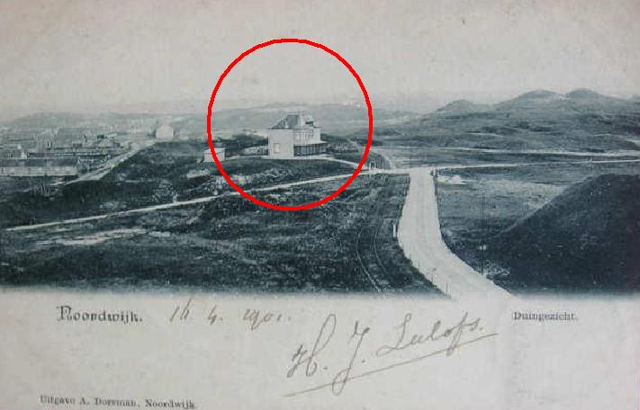 De rails van de stoomtram die van Leiden naar de boulevard voert. De wegen, net aangelegd door de “Maatschappij Tot Exploitatie van Duingrond” zijn gloednieuw en nog bijna onbetreden en onbereden. Een paar jaar later zou het al weer heel anders zijn. Zie foto onder.