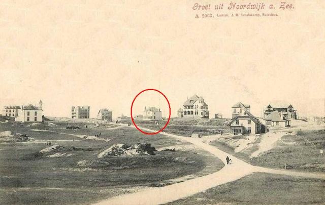 De foto is genomen vanaf de bovenste verdieping van het Huis ter Duin en ziet uit op de driehoek die later als ‘Picképlein’ geboekstaafd zou worden. Links in het del tegen de zee ligt het oude dorp Noordwijk aan Zee. De rest is nog vrijwel helemaal maagdelijk, al is de eerste (houten) villa al verrezen op de kop van de latere Grent. Villa Vera, een pand dat zou uit het decor van een western zou kunnen zijn weggeplukt.