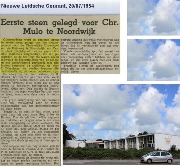Het was jarenlang een beeldbepalend, maar eigenlijk weinig markant gebouw. Gebouwd in 1953 door de architect Geert Dreschage (1914-1983) in een – wat mij betreft – zielloze functionalistische stijl. Maar het stond er en het stond er voor de eeuwigheid: de Christelijke School voor Uitgebreid Lager Onderwijs. Met op de witte zijkant, richting het katholieke Noordwijk-Binnen de letters “Chr. U.L.O.”, strekkend tot eer en verheerlijking van Gods naam! Niet dat die Binders daar nou erg van onder de indruk waren. Twee jaar later al stond er een “RK” ULO beneden aan de Van Panhuysstraat in een minder functionalistisch gebouw met een stevige, neo-toffelemoonse ziel erin.