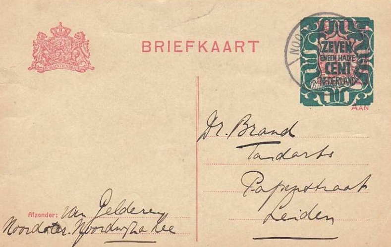 De briefkaart uit Noordwijk is een curieuze, want voorzien van een waarde-overdruk die ik nog niet eerder gezien heb. Veel postzegels werden in het verleden van een andere waarde voorzien met een simpele overdruk van die nieuwe waarde. Maar deze overdruk kan ik nergens terugvinden, zelfs niet in de aloude NVPH-catalogus. Wie brengt uitkomst?