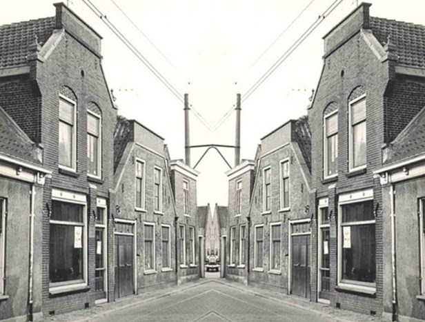 De Gebroeders Piet en Frans Versteeg runden achter deze gevels in de Zeestraat hun smederij. Het was er altijd heet van de vuren en het gloeiende ijzer. Ik herinner me het beeld van Frans die vaak naar buiten vluchtte om aan de hitte te ontsnappen en om een shaggie te roken in de deuropening. Niet dat dat nu zo aangenaam was. Als de tram van Leiden naar Noordwijk aan Zee voorbijkam, moest-ie zijn buik inhouden, anders schuurde het gevaarte langs zijn navel. Later kwam hier een groot woon/bedrijfspand te staan van de Gebroeders met de rooilijn een stuk naar achteren. Eigenlijk was dat toen niet meer nodig, want de tram was inmiddels al lang verdwenen.