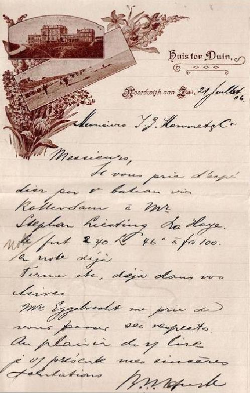 Ik doe het nog steeds. Uit iedere hotelkamer waar ik verblijf neem ik de velletjes postpapier mee, die ik ooit dan wel weer eens gebruik voor een missive aan deze of gene. Dit postpapier had ik ook graag gebruikt. Van Huis ter Duin uit 1906. Twee fotootjes van het Kurhaus, gelardeerd met bloeiende hyacinthen in sepia-kleuren.