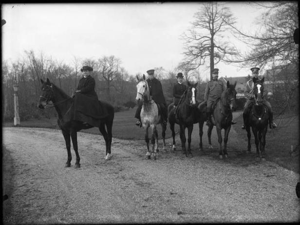 Op de foto de toenmalige Koningin Wilhelmina in gezelschap van een hele staf aan medewerkers en paarden. Van links naar rechts: C. A. Baron Bentinck, opperstalmeester; A. J. Juckema van Burmania Barones Rengers, hofdame; generaal-majoor R. J. Graaf Schimmelpenninck, adjudant van de koningin; en eerste luitenant jhr. C. L. H. Quarles van Ufford, ordonnansofficier. Deze laatstgenoemde is volgens mijn informatie verkeerd aangeduid. Niet C.L.H. Quarles, maar H.G.A. Quarles was ordonnansofficier van Wilhelmina geweest. Deze jhr. Hendrik Gustaaf Adolf Quarles van Ufford was in 1894 in Noordwijk geboren als zoon van burgemeester jhr. Jan Quarles van Ufford.