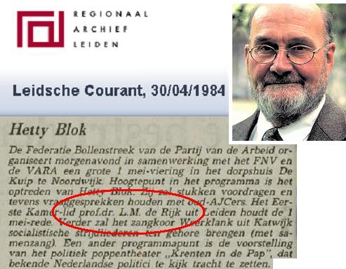 Het blogje was opgehangen aan een optreden van hem in Noordwijk, in “De Kuip” in 1984. Hij hield daar de 1 mei lezing voor de Federatie Bollenstreek van de Partij van de Arbeid en ik betreurde nog dat ik daar toen niet bij ben geweest. Want De Rijk was een zeer erudiet man en een groot filosoof en classicus. En ik had mijn eindexamen Latijn bij hem gedaan, veel meer een inspirerend gesprek dan een examen.
