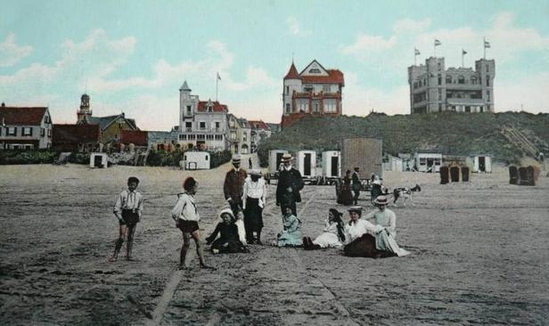 Nee, dan vroegâh: met deze foto in de hand lijkt het er op dat met een beetje vloed het water tot aan de Grent kon reiken. Niemand die daar verder aanstoot aan nam, ik zie geen verontruste gezichten. Vroeger kon men blijkbaar ook zonder dijken in duinen.