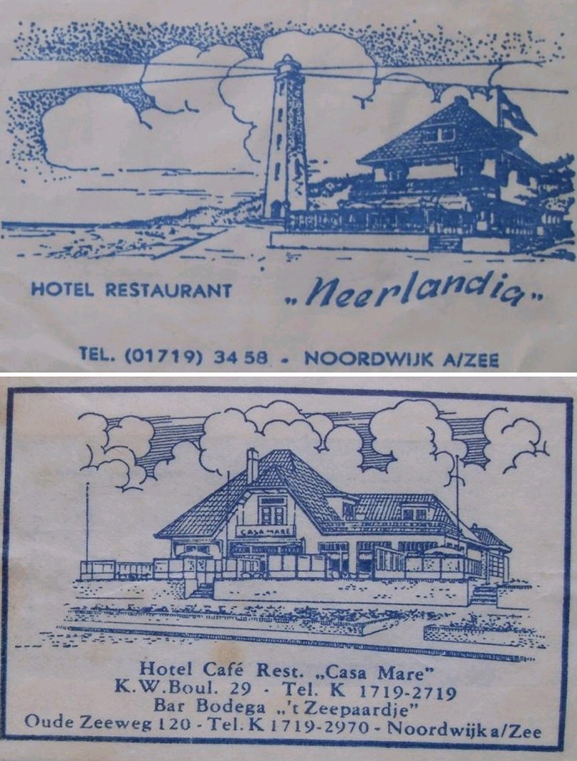 Beide café-restaurants – Neerlandia en Casa Mare, beiden aan de Noordboulevard – bestaan niet meer, maar de handel in suikerzakjes op internet laat deze oer-uitspanningen nog mooi voortleven. Ze stonden ook .naast elkaar, in mijn herinnering, ongeveer op de plek waar nu het Beach Hotel staat en Het Elfde Gebod (?).