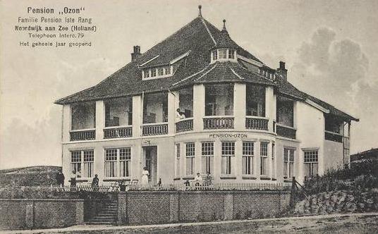 ‘Ozon’ zal ongetwijfeld een ‘eersterangs’ familiepension zijn geweest, maar ik heb het geluk niet gehad dat uit te proberen. Het stond in ieder geval op een magnifieke plek, recht tegenover de lawntennisbanen van de Noordwijksche Sportvereeniging en de villa’s daarachter.