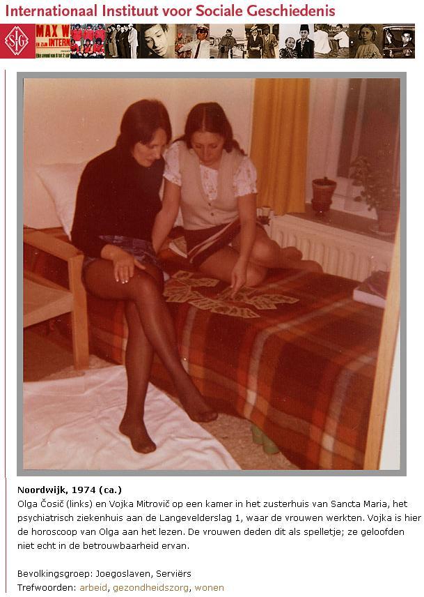 Een foto met bijschrift van de prachtige website van het Internationaal Instituut voor Sociale Geschiedenis. Blijkbaar kwamen al in het begin van de jaren zeventig jonge Joegoslavische vrouwen naar Nederland om hier in de zorg te werken. Soms biedt het verleden perspectief: het zal misschien niet lang meer duren of Nederlandse zorginstellingen moeten met het oog op de toenemende vegrijzing en kostenstijgingen opnieuw een beroep gaan doen op buitenlandse hulp.